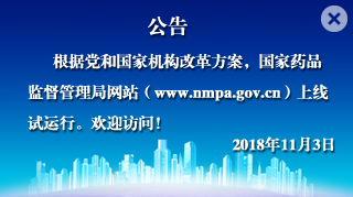 11月3日,新改版國家藥品監(jiān)督管理局網(wǎng)站正式上線(www.nmpa.gov.cn)。
